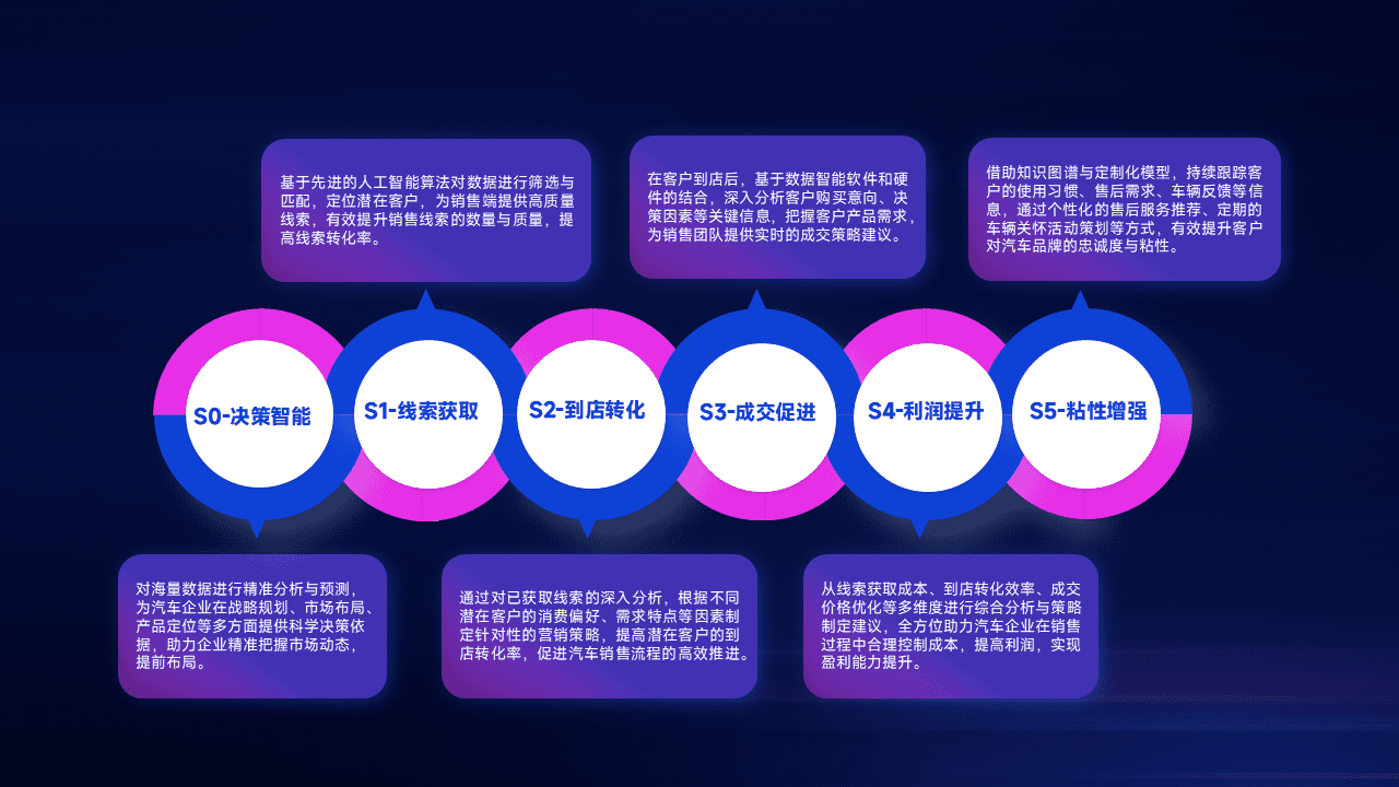 通过拓宽潜在客户来源、、、优化线索分配并提高到店转化率,,,以增强销售效率。。。。同时,,,,利用线索数据不断优化分析模型,,,,有效提升转化率,,扩大营销影响力。。